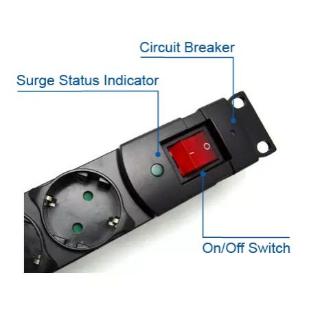 This 8 German (Schuko) outlets rack mount PDU is available with built-in circuit breaker and surge protector. By providing circuit breaker and surge protection, this PDU ensure the safety of the connected devices and the electrical system, minimizing the risk of early failures or downtime costs. Having an on/off switch allows users to easily turn off the power supply to all connected devices when they are not in use, saving energy and reducing standby power consumption. A surge protection working indicator provides a visual indication of the surge protection status, allowing users to quickly identify if the PDU and the connected devices are protected.