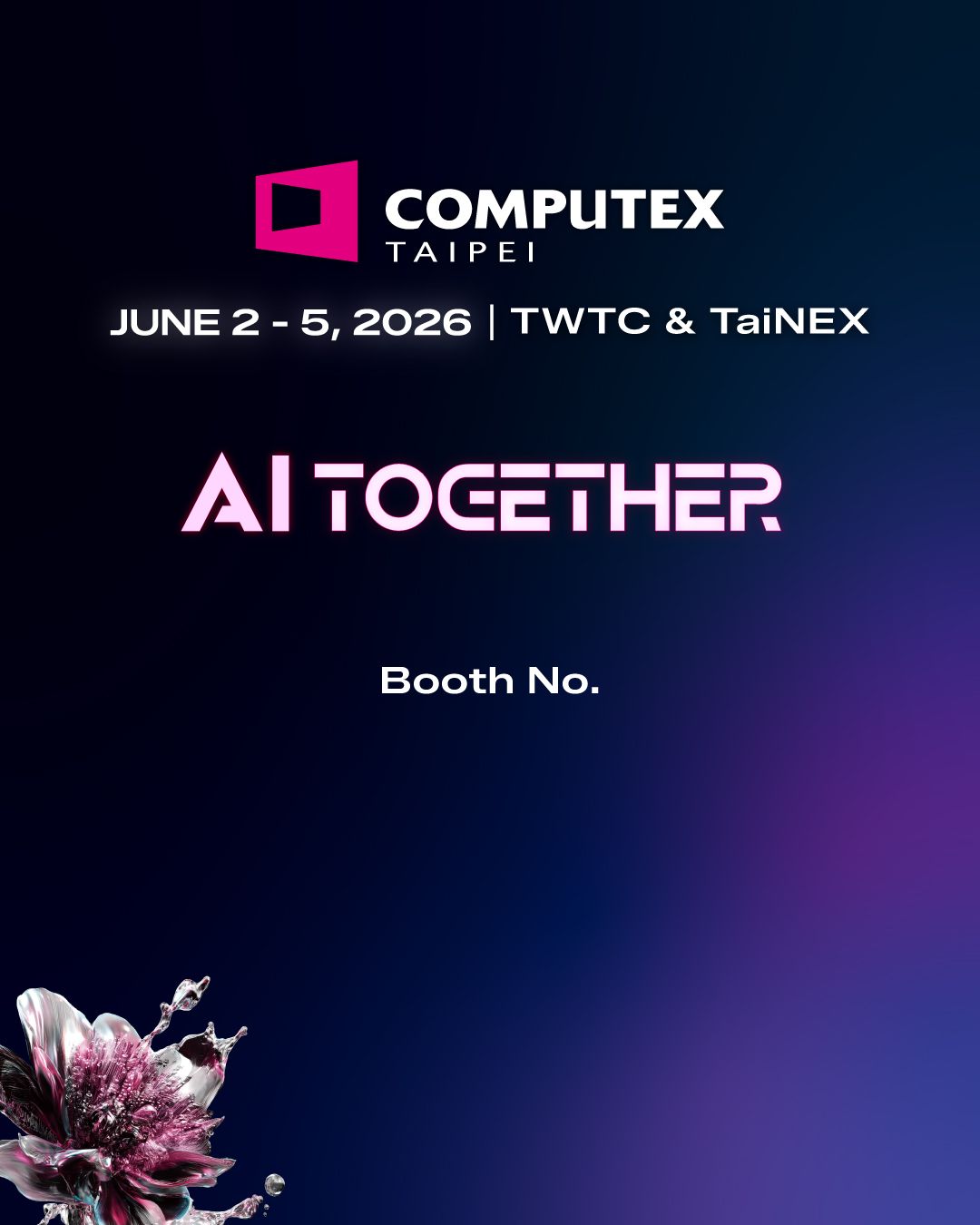展览:2026 台北国际电脑展 展出时间:2026年6月2日~2026年6月5日(9:30~17:30) 摊位号码:I0018 地点:台北南港展览馆一馆 (台北市南港区经贸二路1号1楼)